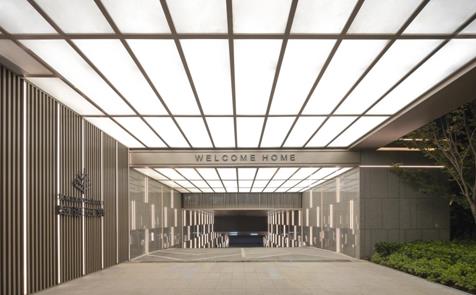 当然,车行归家也是仪式感满满。在社区大堂主入口的旁边,萃语云筑精心设置了地库的出入口,上面装饰有精美的顶灯和“Welcome Home”导视牌,搭配竖向灯带、logo景墙和铝合金格栅的组合,让归家更具尊贵感和仪式感。